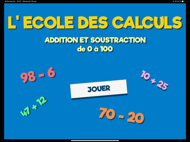 Application iOS conçue pour aider les élèves de l'école primaire à pratiquer les additions et les soustractions avec des nombres de 0 à 100.