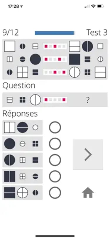 Cette application est développée dans le but de fournir des tests de Raisonnement Abstrait similaires à ceux utilisés dans plusieurs processus de recrutement. Les tests fournis utilisent une structure semblable à ces derniers et requièrent la même méthode de résolution.