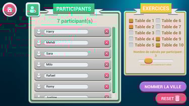 L'application sélectionne aléatoirement chacun des élèves pour répondre à des calculs.