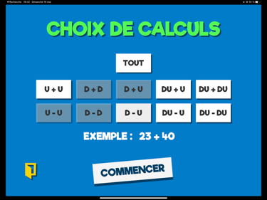 Plusieurs niveaux de difficulté adaptés aux capacités des élèves (Par exemple, Dizaines + Dizaines, Dizaines + Unités, Dizaines et Unités + Dizaines et Unités, etc.), leur permettant ainsi d'apprendre à leur propre rythme.